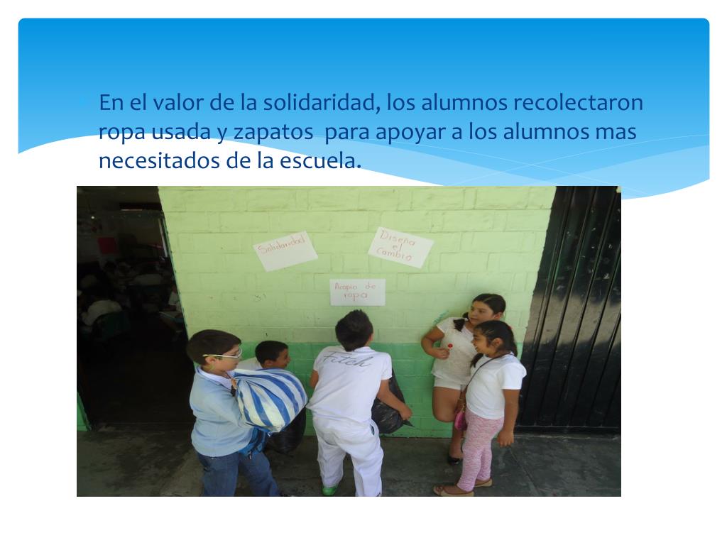 En el valor de la solidaridad, los alumnos recolectaron ropa usada y zapatos para apoyar a los alumnos mas necesitados de la escuela.