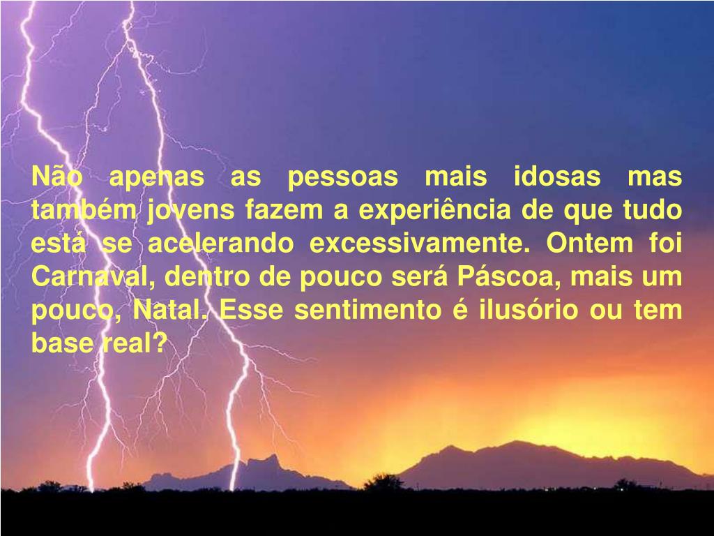 Não apenas as pessoas mais idosas mas também jovens fazem a experiência de que tudo está se acelerando excessivamente. Ontem foi Carnaval, dentro de pouco será Páscoa, mais um pouco, Natal. Esse sentimento é ilusório ou tem base real?