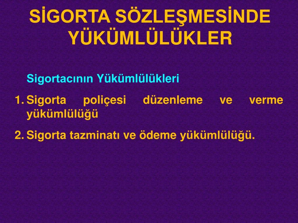SİGORTA SÖZLEŞMESİNDEYÜKÜMLÜLÜKLER Sigortacının Yükümlülükleri Sigorta poliçesi düzenleme ve verme yükümlülüğü Sigorta tazminatı ve ödeme yükümlülüğü.