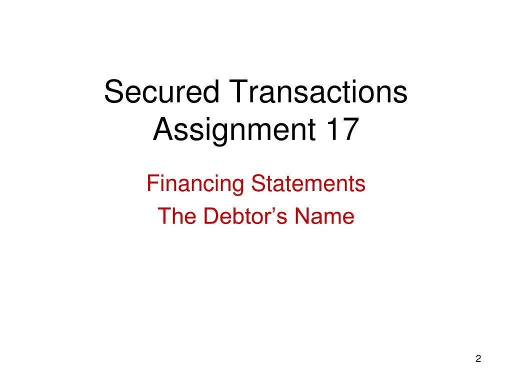 Secured TransactionsAssignment 17 Financing Statements The Debtor’s Name