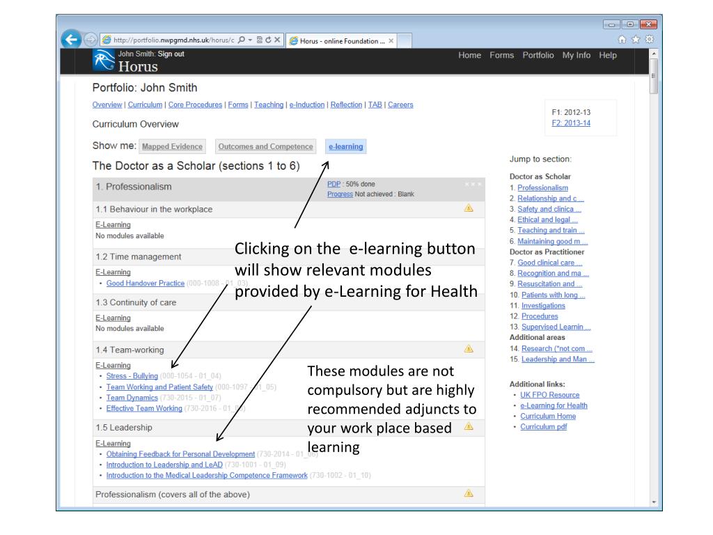 Horus 2012. NW Deanery Training Tools. As a Foundation Doctor you will have to show that you are working to achieve the competencies outlined in the Foundation Curriculum. Much of this you will achieve during your day-to-day work and at the teaching