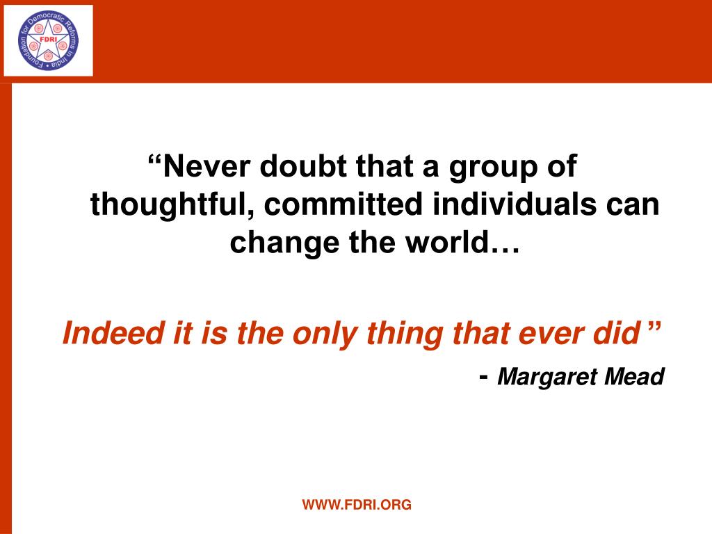 “Never doubt that a group of thoughtful, committed individuals can change the world… Indeed it is the only thing that ever did ” - Margaret Mead WWW.FDRI.ORG