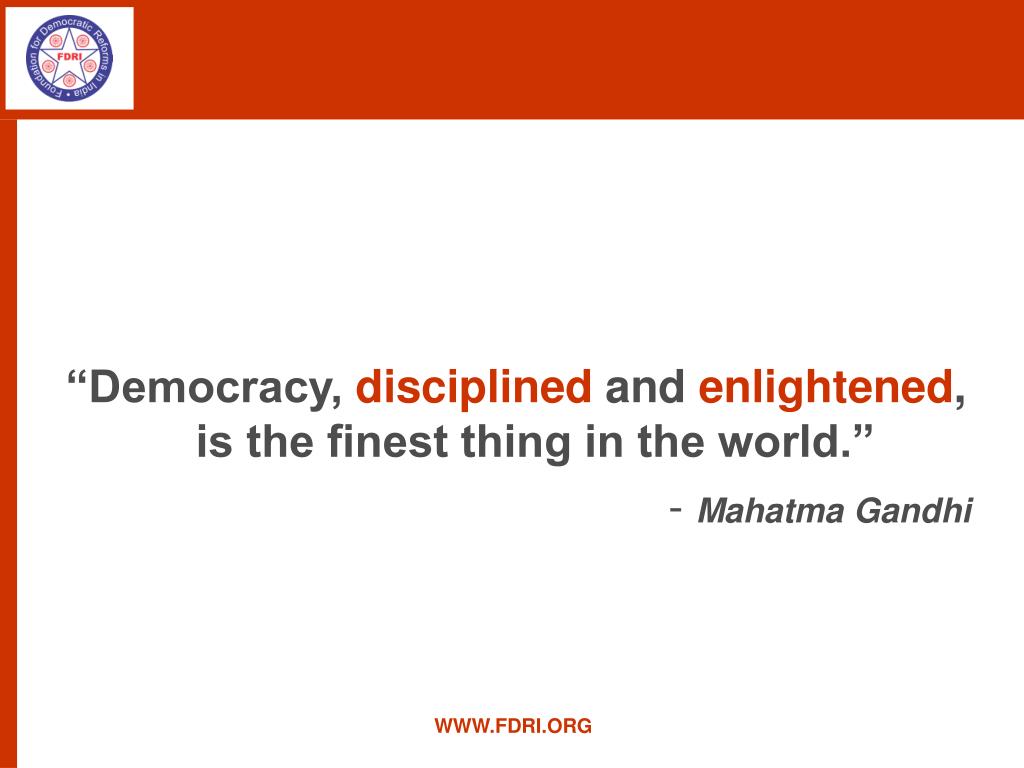 “Democracy, disciplined and enlightened, is the finest thing in the world.” - Mahatma Gandhi WWW.FDRI.ORG