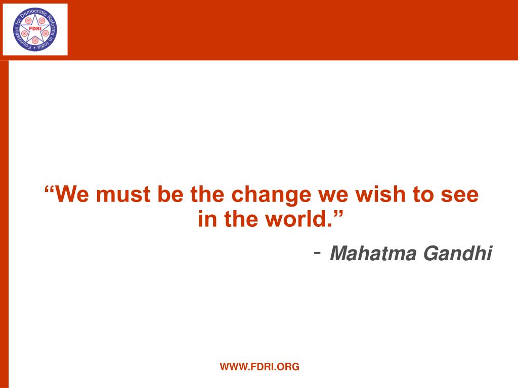 “We must be the change we wish to see in the world.” - Mahatma Gandhi WWW.FDRI.ORG