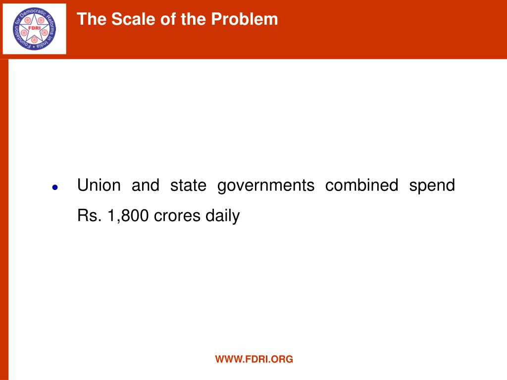 The Scale of the Problem • Union and state governments combined spend Rs. 1,800 crores daily WWW.FDRI.ORG