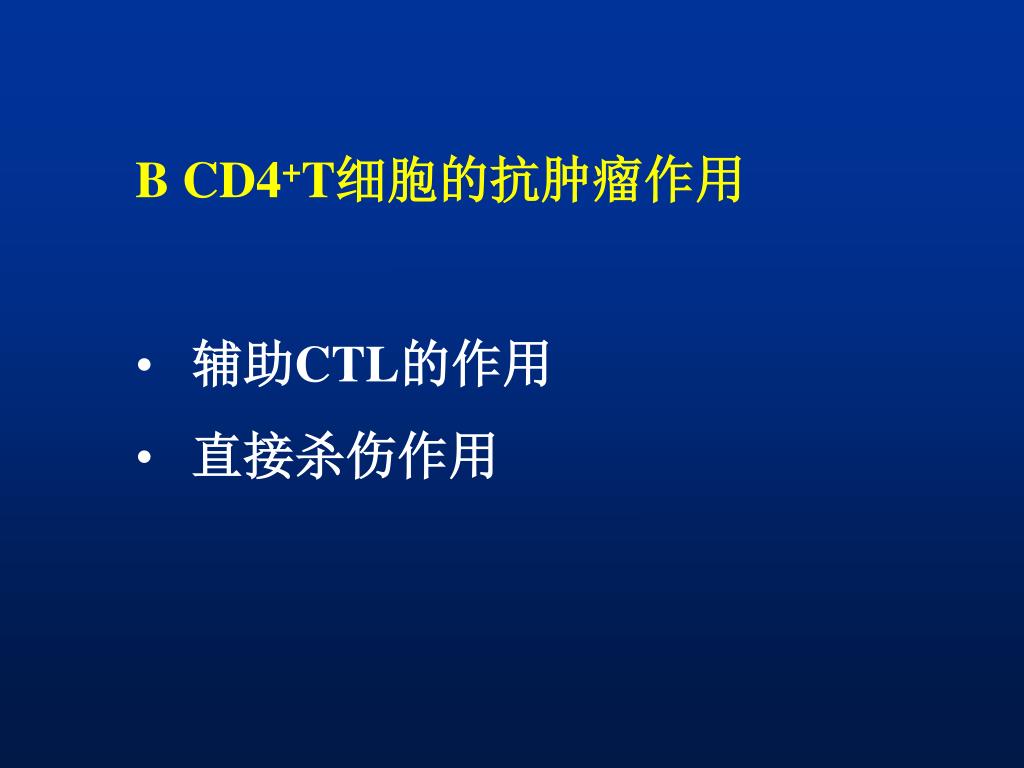 B CD4+T细胞的抗肿瘤作用 • 辅助CTL的作用 • 直接杀伤作用