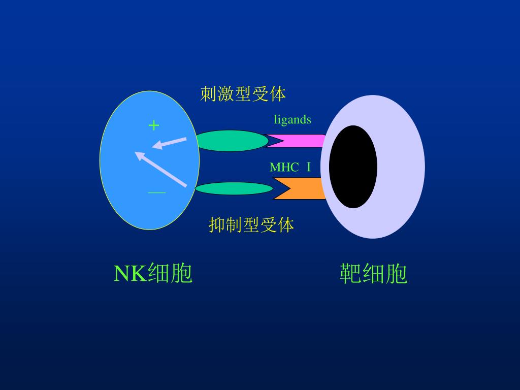刺激型受体 + ligands MHC Ⅰ — 抑制型受体 NK细胞 靶细胞