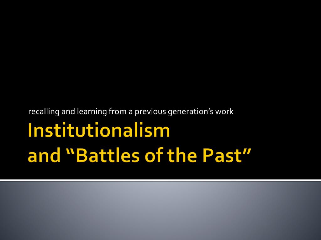 recalling and learning from a previous generation’s work Institutionalismand “Battles of the Past”