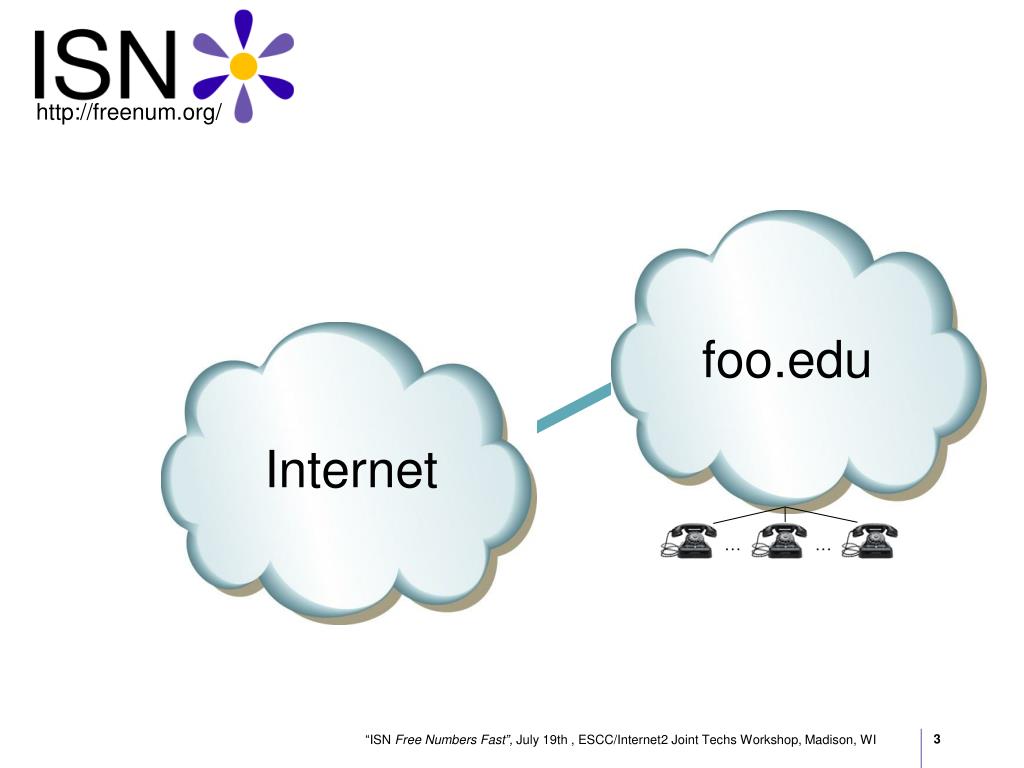 http://freenum.org/. ISN Free Numbers Fast. Ben Teitelbaum, Internet2. …. …. PSTN. foo.edu. …. …. foo.edu. Internet. …. …. foo.edu. VoIP brought to you by…. …. …. VoIP brought to you by…. foo.edu. RTC brought to you by…. foo.edu. …. ….