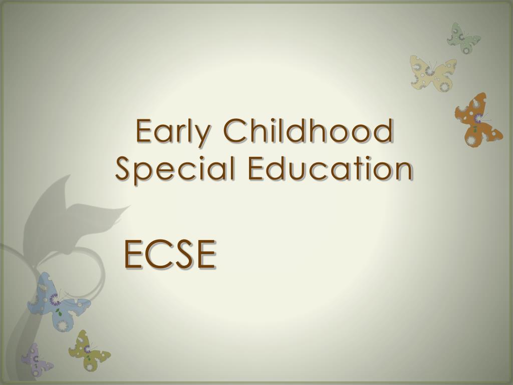 ECSE. Early Childhood Special Education. Cindy Stolp. Normandale Community College AA Mankato State BA Elementary Education 1-6 College of St Catherine Kindergarten St Cloud State Graduate School Early Childhood Special Education Parent Education