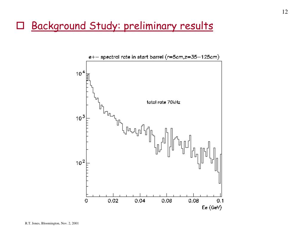 12 • Background Study: preliminary results R.T. Jones, Bloomington, Nov. 2, 2001