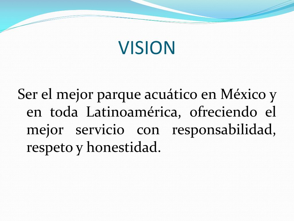VISION Ser el mejor parque acuático en México y en toda Latinoamérica, ofreciendo el mejor servicio con responsabilidad, respeto y honestidad.