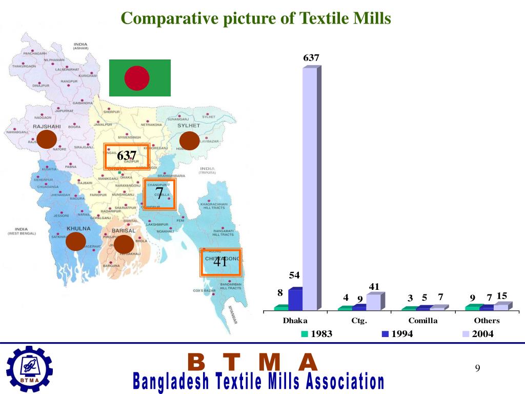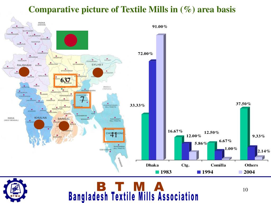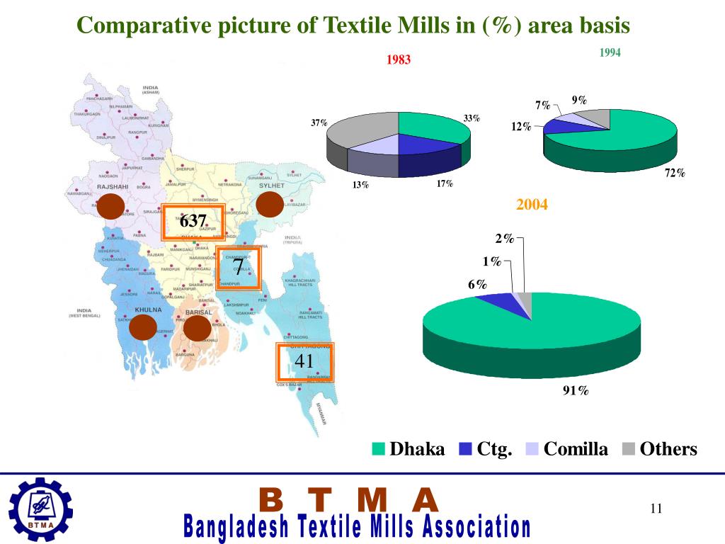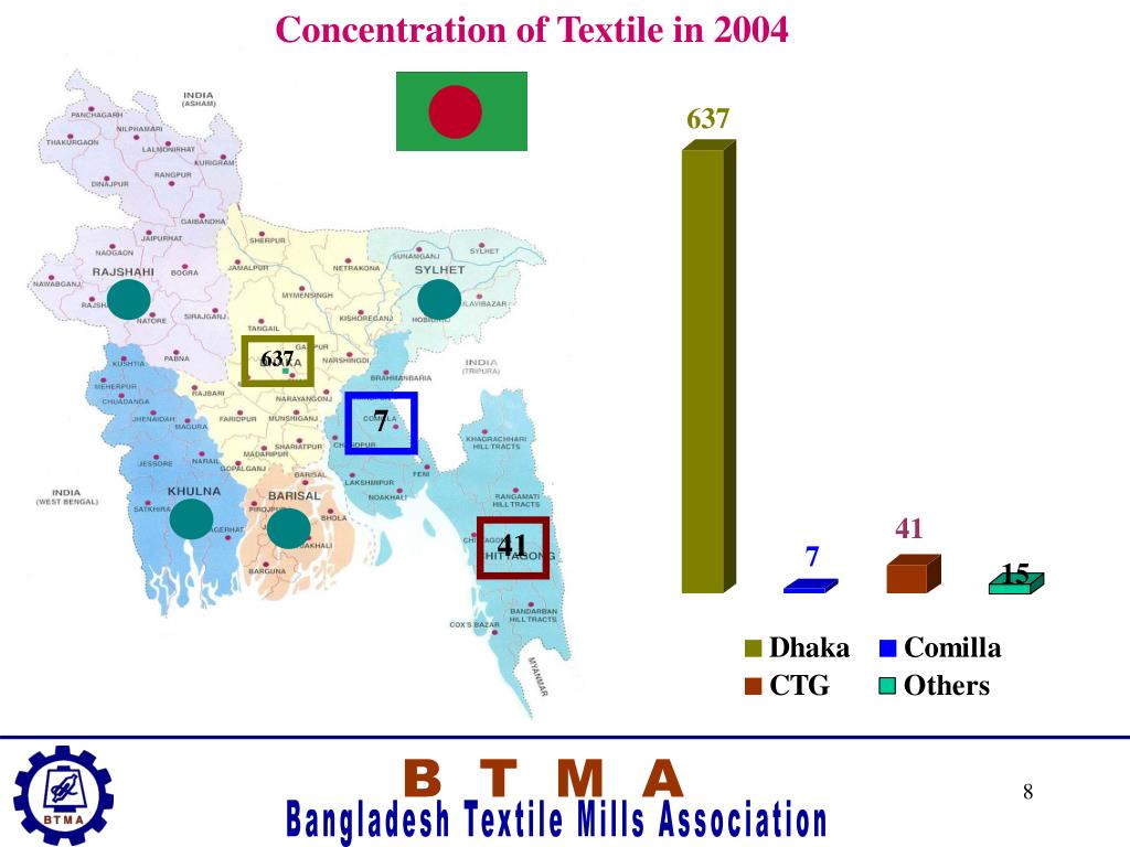 Concentration of Textile in 2004 637 7 41 B T M A Bangladesh Textile Mills Association