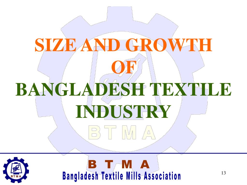 SIZE AND GROWTH OFBANGLADESH TEXTILE INDUSTRY B T M A Bangladesh Textile Mills Association
