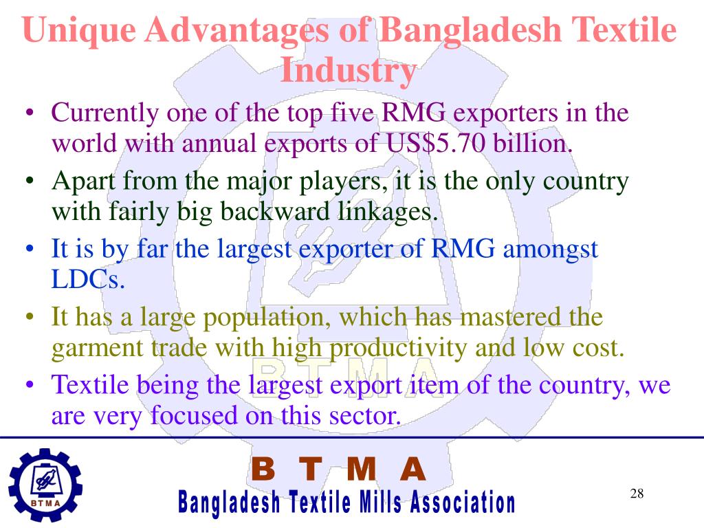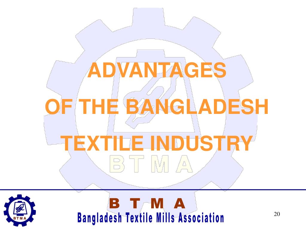 ADVANTAGES OF THE BANGLADESH TEXTILE INDUSTRY B T M A Bangladesh Textile Mills Association