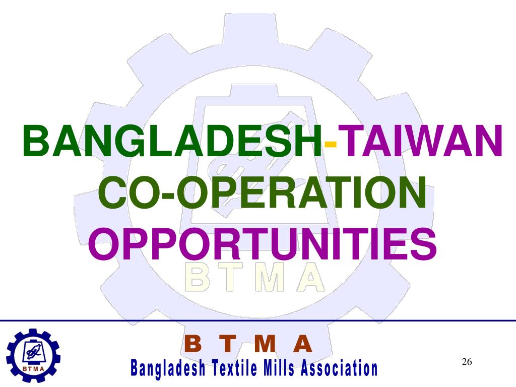 BANGLADESH-TAIWANCO-OPERATION OPPORTUNITIES B T M A Bangladesh Textile Mills Association