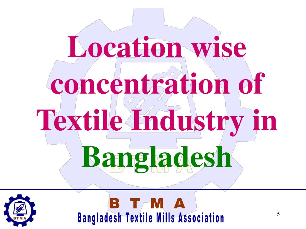 Location wise concentration of Textile Industry in Bangladesh B T M A Bangladesh Textile Mills Association