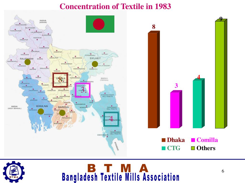 Concentration of Textile in 1983 8 3 4 B T M A Bangladesh Textile Mills Association
