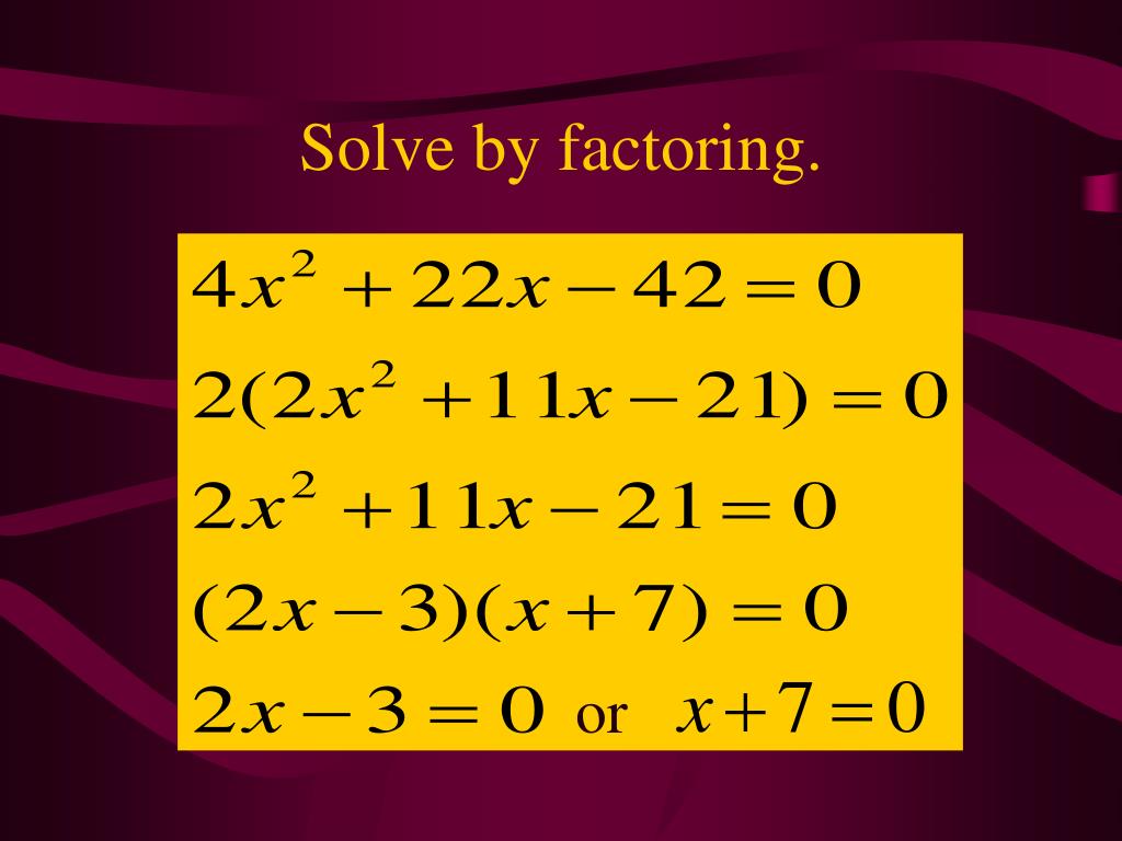 or Solve by factoring.