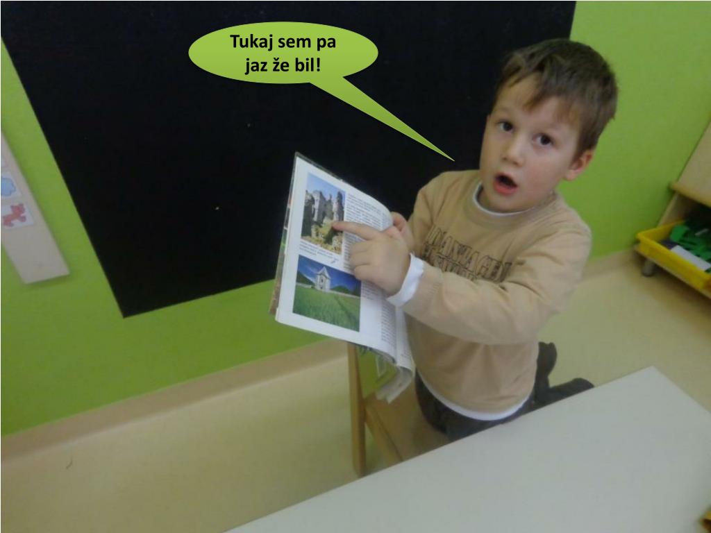 PRIMERI DEJAVNOSTI S KATERIMI PREDŠOLSKI OTROK SPOZNAVA GEOGRAFSKE IN KULTURNE ZNAČILNOSTI SLOVENIJE VRTEC ANTONA MEDVEDA KAMNIK Alenka Repanšek Uršič Barbara Zorman. KAJ ŽE VEMO O SLOVENIJI?. PREGLEDUJEMO KNJIGE, ATLASE, TURISTIČNE VODNIKE. Tukaj sem pa jaz že bil!.