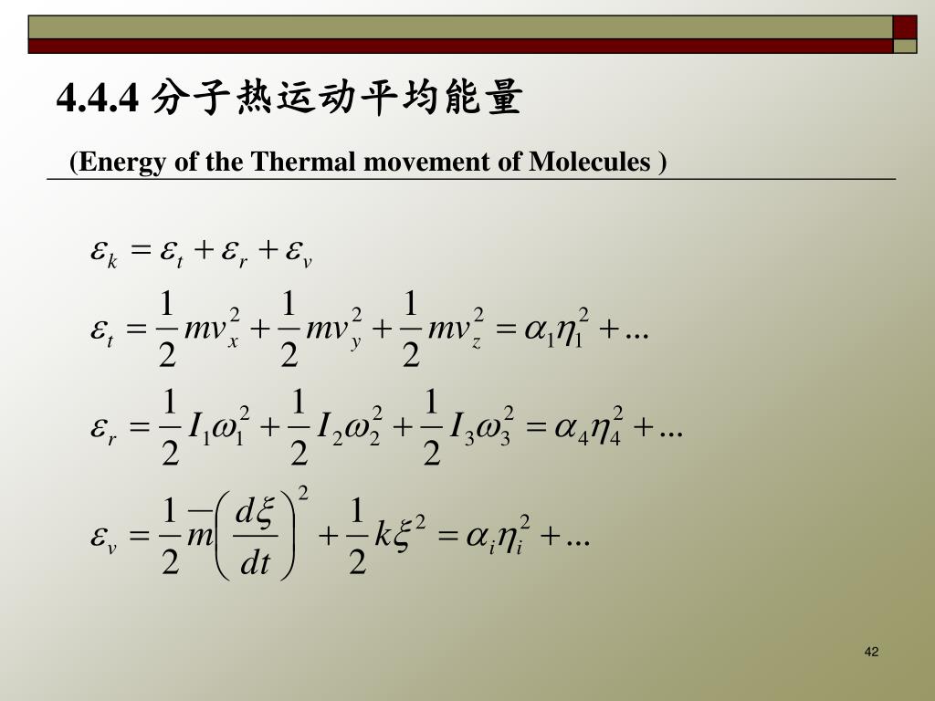 4.4.4 分子热运动平均能量(Energy of the Thermal movement of Molecules )