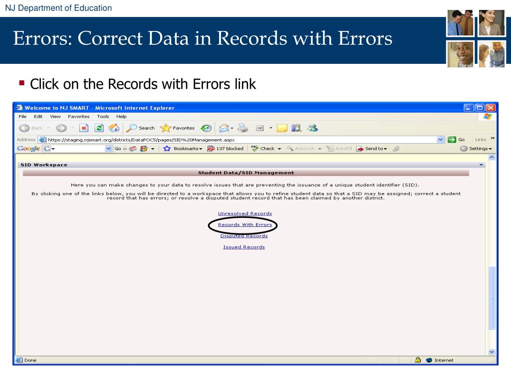 Clear a SID: Unresolved & Errors • Click on the Records with Errors or Unresolved Records link