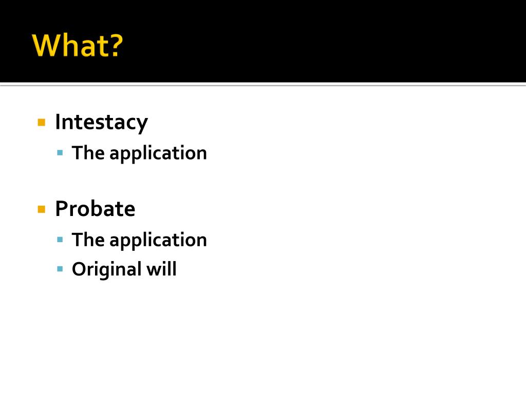 Filing. Where?. Court with: Jurisdiction, and Venue. What?. Intestacy The application. What?. Intestacy The application Probate The application Original will. Cost?. Lubbock $275 to probate will and open administration $271 to probate will as muniment of title Travis