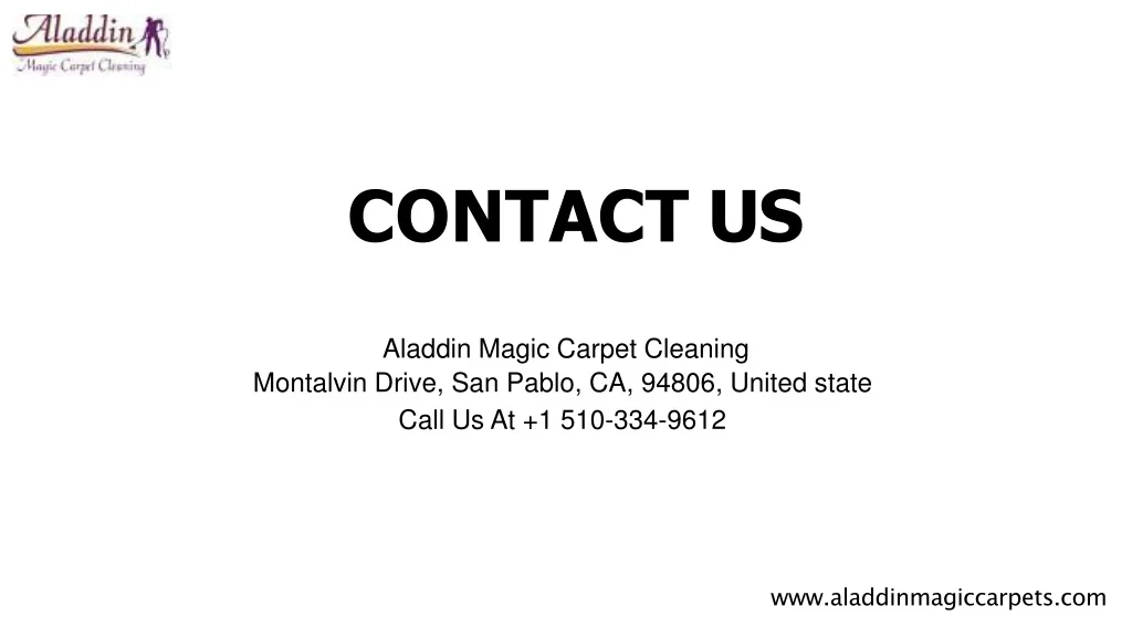 CONTACTUS AladdinMagicCarpetCleaning Montalvin Drive, San Pablo, CA, 94806, United state CallUs At +1510-334-9612 www.aladdinmagiccarpets.com