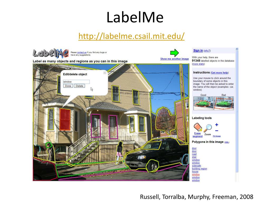 LabelMe http://labelme.csail.mit.edu/ Russell, Torralba, Murphy, Freeman, 2008