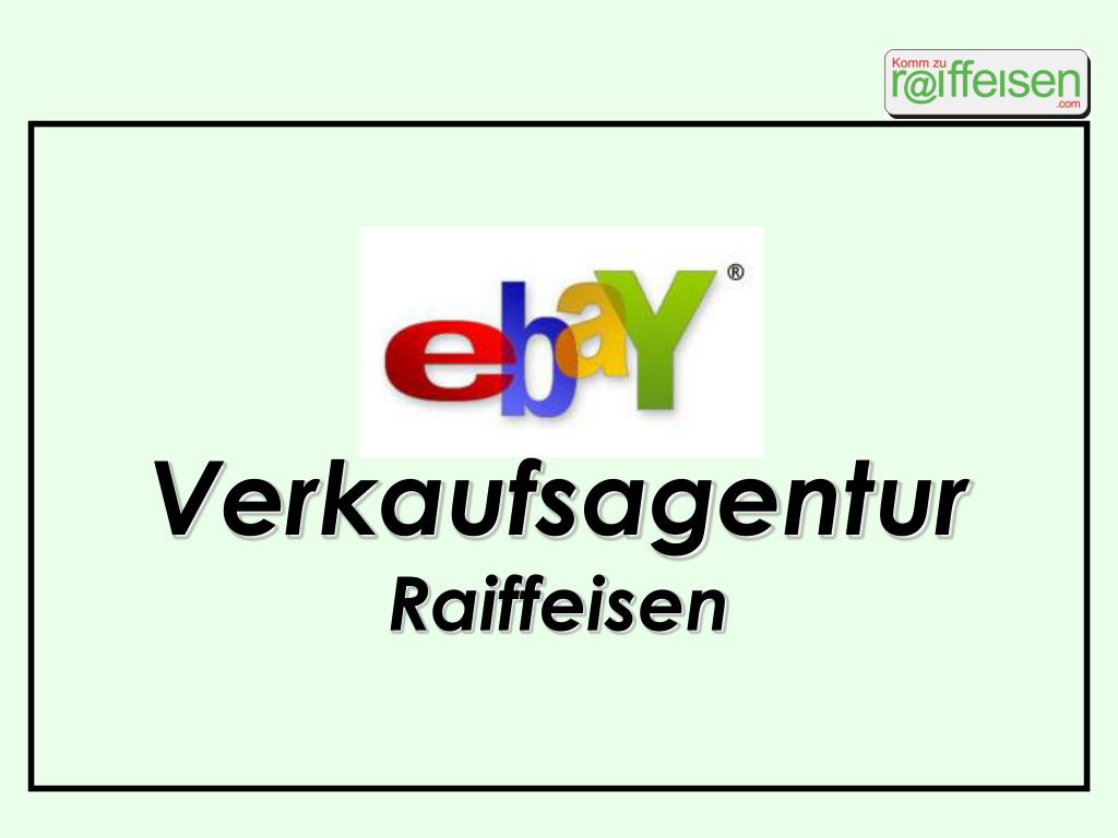 Verkaufsagentur Raiffeisen. Idee ebay-Vermarktung. Ausgangslage Überzählige Posten aus Werbeware in Märkten vorhanden ebay dafür ein guter Vertriebskanal momentan überwiegend Einzelkämpfer bei ebay Vergeudung von Arbeitszeit , da kein Gesamtkonzept erkennbar. Vorschlag