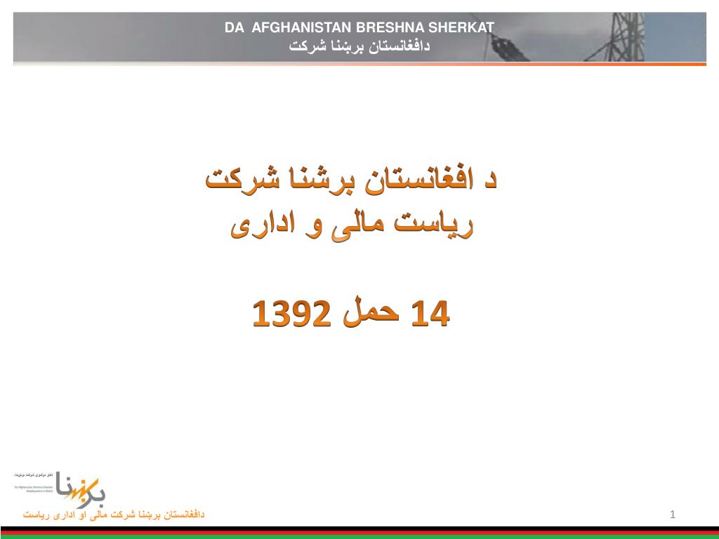 DA AFGHANISTAN BRESHNA SHERKAT دافغانستان برښنا شرکت • د افغانستان برشنا شرکت • ریاست مالی و اداری • 14 حمل 1392 دافغانستان برښنا شرکتمالی او اداری ریاست