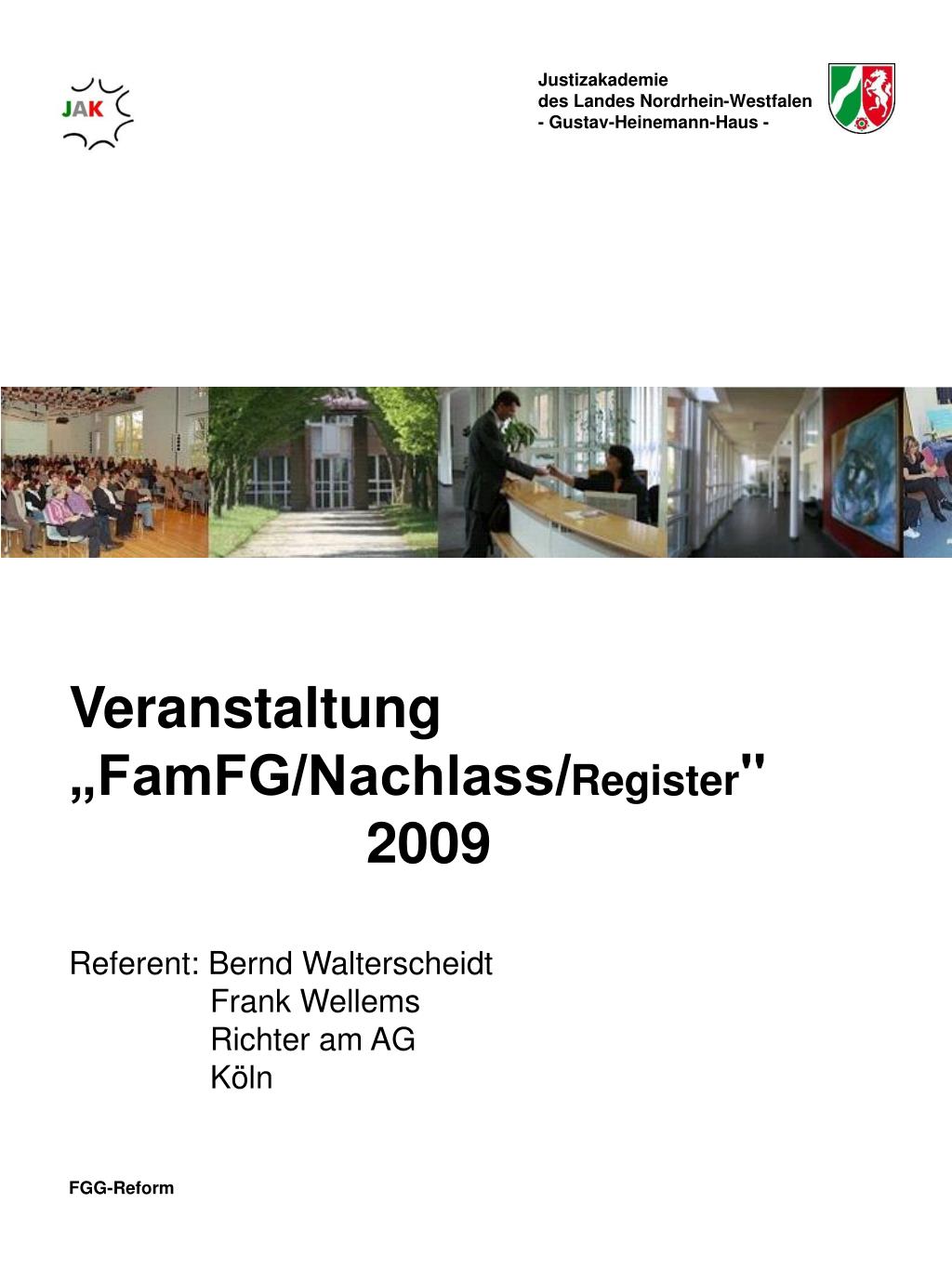 Veranstaltung „FamFG/Nachlass/Register" 2009 Referent: Bernd Walterscheidt Frank Wellems Richter am AG Köln