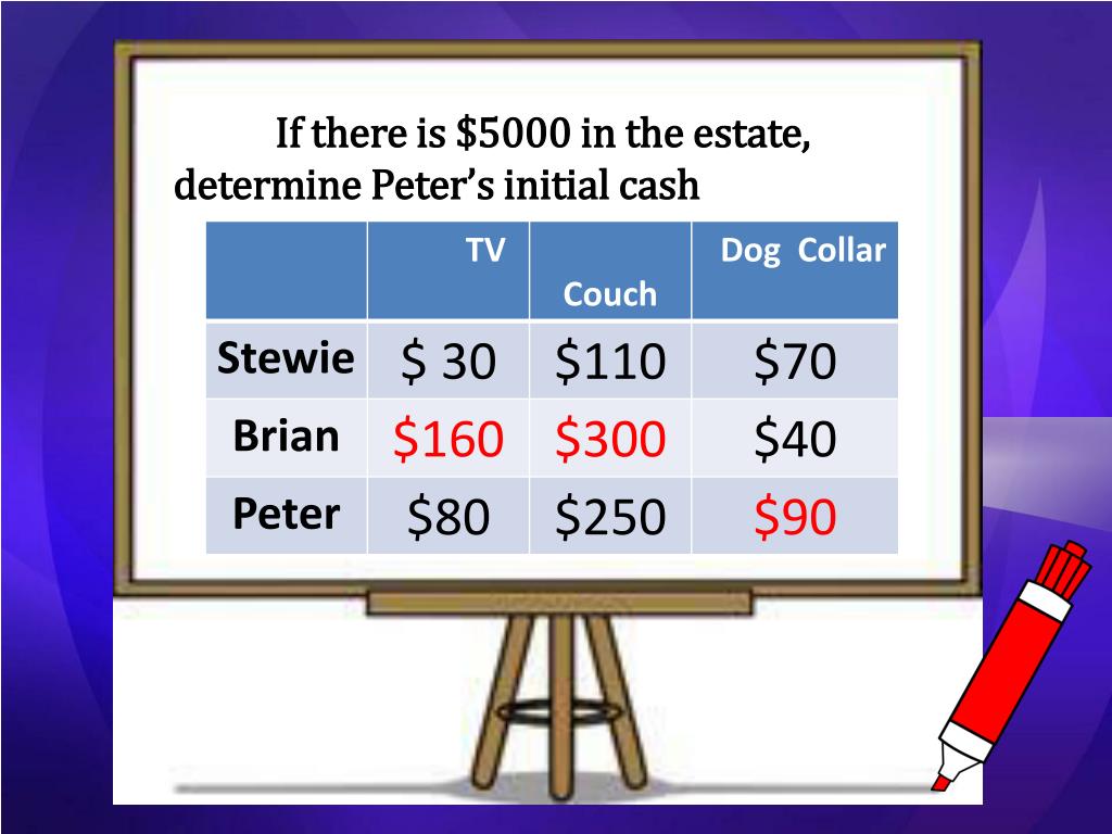 Determine Peter’s initial cash if there is $5000 cash in the estate