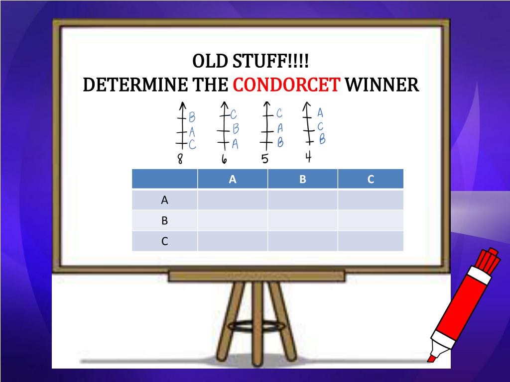 OLD STUFF!!!! DETERMINE THE CONDORCET WINNER