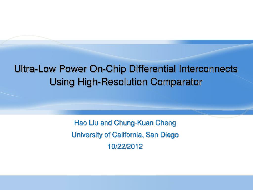 Ultra-Low Power On-Chip Differential InterconnectsUsing High-Resolution Comparator Hao Liu and Chung-Kuan Cheng University of California, San Diego 10/22/2012