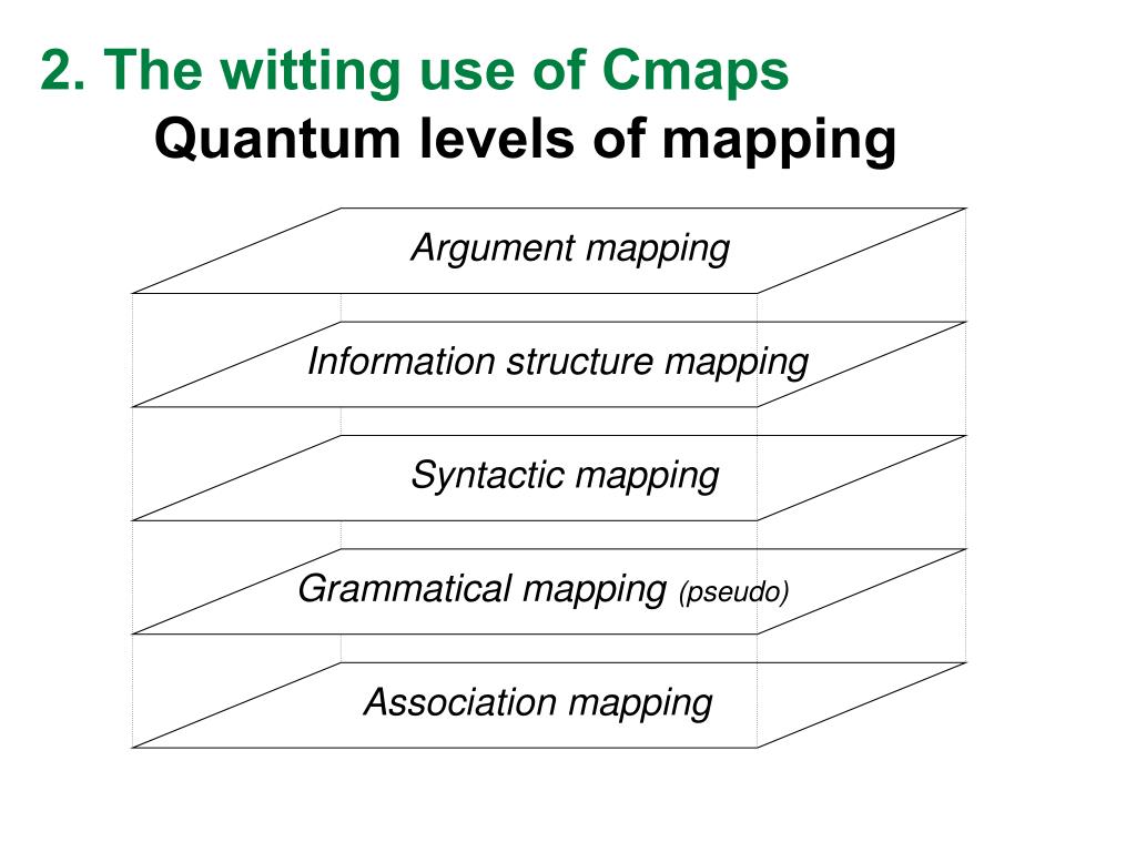 2. The witting use of CmapsQuantum levels of mapping Argument mapping Information structure mapping Syntactic mapping Grammatical mapping (pseudo) Association mapping