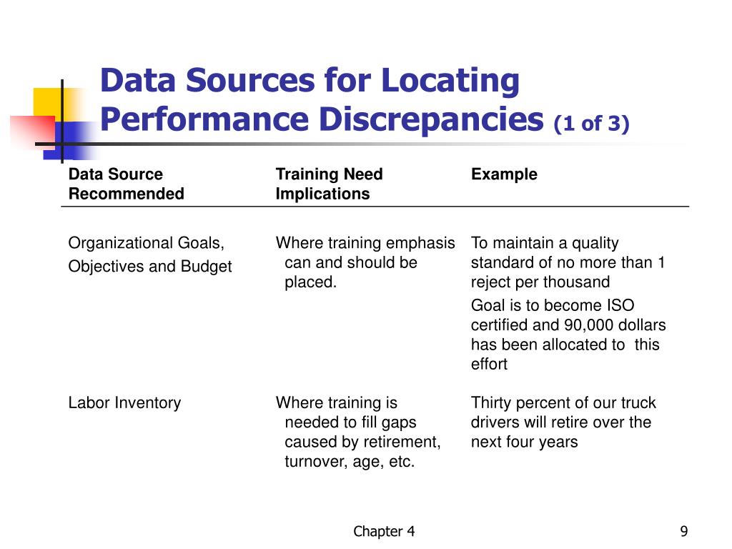 Data Sources for Locating Performance Discrepancies (2 of 3) Chapter 4