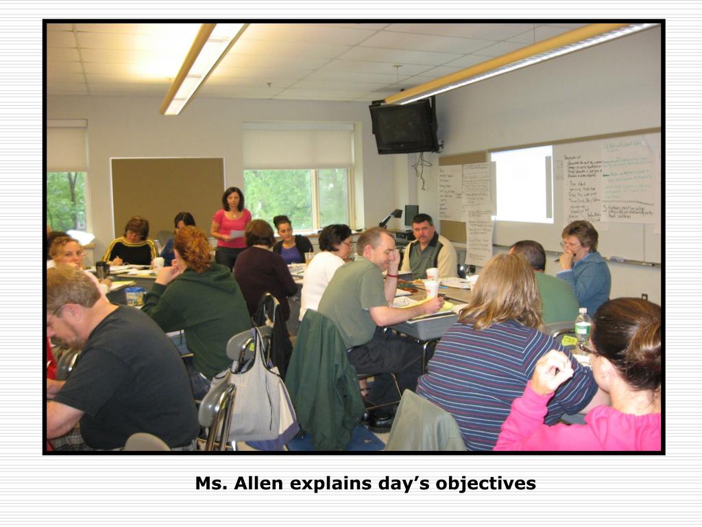 Content Area Literacy Strategies. Summer Institute 2009 Class Photos. Presenters:. Judi Allen Director of History and Social Studies K-12, Malden Public Schools Jane Skelton Director of English, Malden Public Schools. Ms. Allen explains day’s objectives . Student engagement .