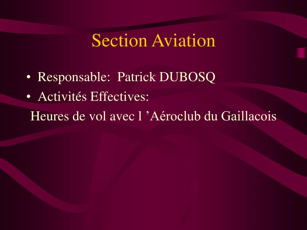 Section Aviation • Responsable: Patrick DUBOSQ • Activités Effectives: Heures de vol avec l ’Aéroclub du Gaillacois