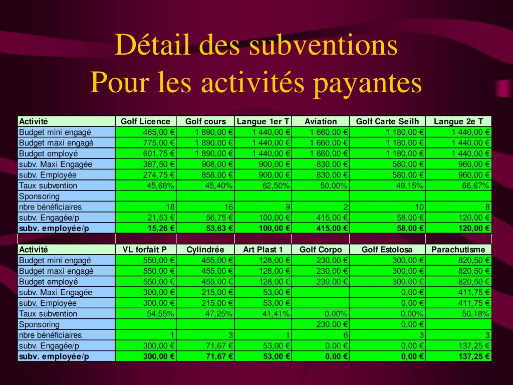Bilan financier de l ’Association • Fonctionnement basé sur une subvention forfaitaire du Comité d ’Etablissement de STERIA TOULOUSE aux activités de Planète Loisirs STERIA • Politique de subventionnement pour toutes activités: entre 50 et 60%, uniquement pour les ayants-droits .