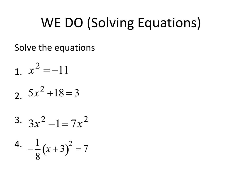 WE DO (Solving Equations) Solve the equations 1. 2. 3. 4.