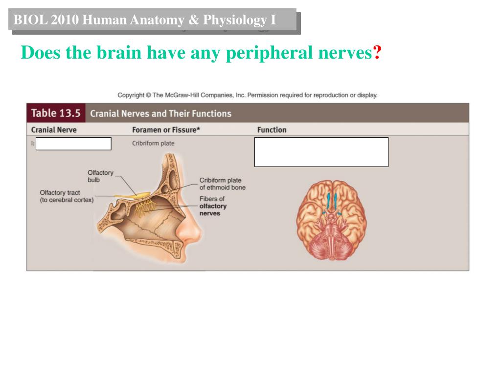 BIOL 2010 Human Anatomy & Physiology I Does the brain have any peripheral nerves?