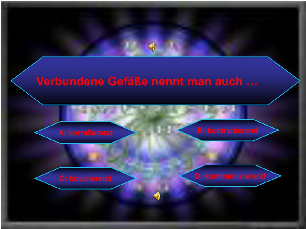 Verbundene Gefäße nennt man auch … B: kontrahierend A: korrelierend D: kommunizierend C: kovalierend