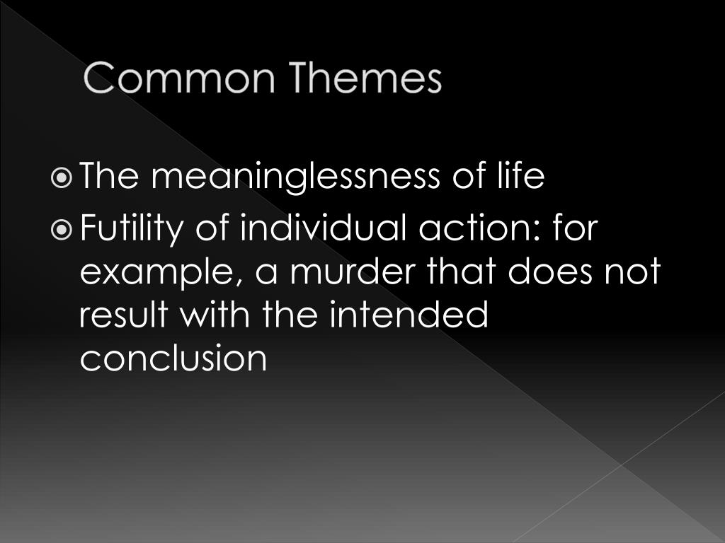 Common Themes • The meaninglessness of life • Futility of individual action: for example, a murder that does not result with the intended conclusion