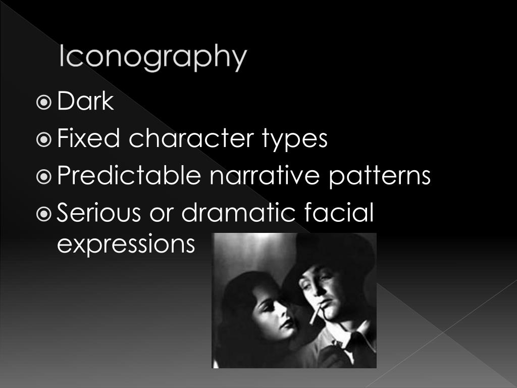 Iconography • Dark • Fixed character types • Predictable narrative patterns • Serious or dramatic facial expressions