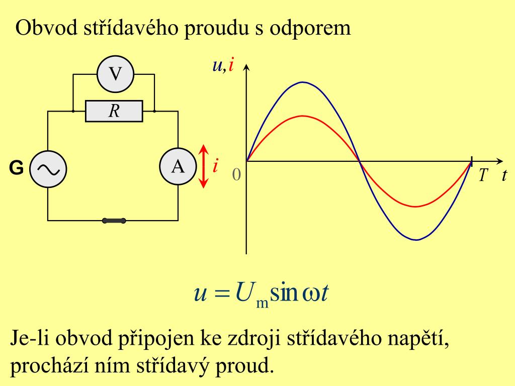 u,i V A G t 0 Obvod střídavého proudu s odporem Je-li obvod připojen ke zdroji střídavého napětí, prochází ním střídavý proud.