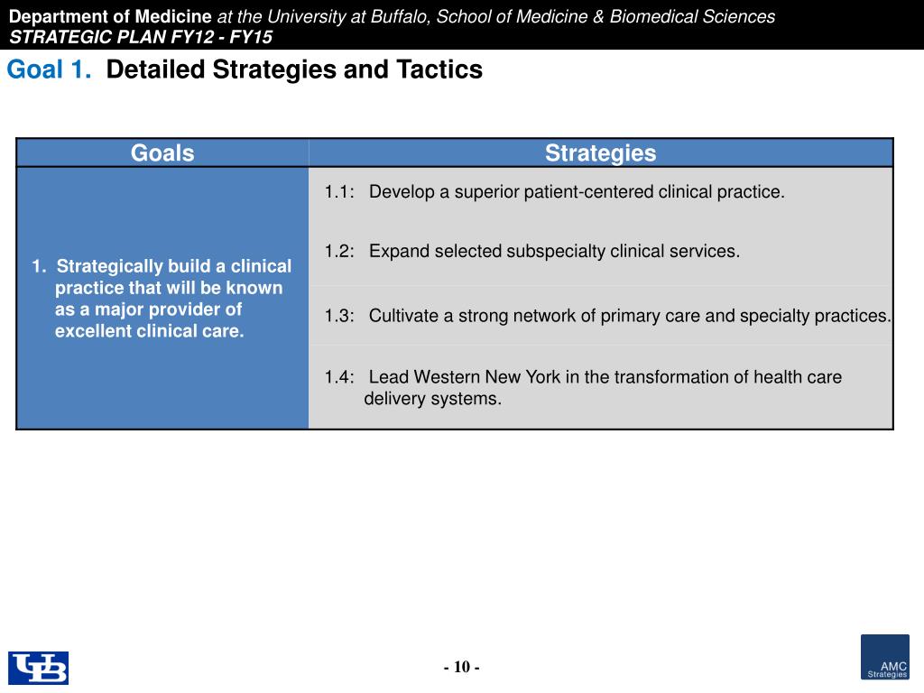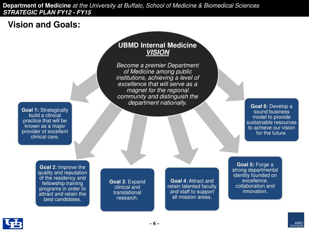Department of Medicine at the University at Buffalo School of Medicine and Biomedical Sciences. STRATEGIC PLAN FY12 - FY15. Contents. Page. Strategic Planning Process 2 Mission, Vision and Goals 4 Strategies and Tactics 7 Implementation Plan 56 Appendices 60.