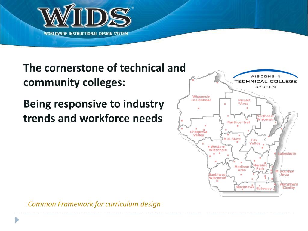 Why WIDS? • Align curriculum with external standards • Store curriculum electronically • Prepare for accreditation visits • Improve articulation • Guidance and framework for teachers who are not skilled in instructional design