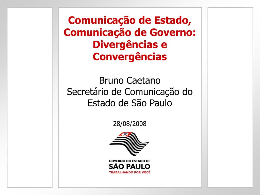 Comunicação de Estado, Comunicação de Governo: Divergências e ConvergênciasBruno CaetanoSecretário de Comunicação do Estado de São Paulo28/08/2008