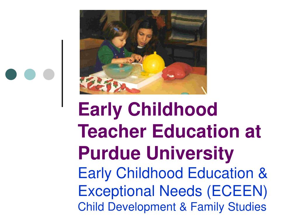 Early Childhood Teacher Education at Purdue University Early Childhood Education & Exceptional Needs (ECEEN) Child Development & Family Studies. Early Childhood Education & Exceptional Needs. A Dual Licensure Program: Preschool Generalist